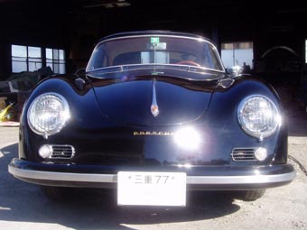 この車両はシートはGT用に仕上がったもの、GTミラーはアルミ製、ロールバーはGT風にワンオフ製作、'58のGTということでエンジンフードのスリットは5本、内側に折り返し無し、サイドの亀裂止めホール無しで製作し、アクアマリーンメタリックで仕上げました。 ただオーナー、私、共にアクアマリーンメタリックに塗られた356を見たことが無い為、こんな感じでは?といった具合で、ほとんど私の独断でこの色になりました。 来店なさる方々には、なかなかの評判なのですが、未だに、こんな色なのだろうか?と見るたびに考えています。 |