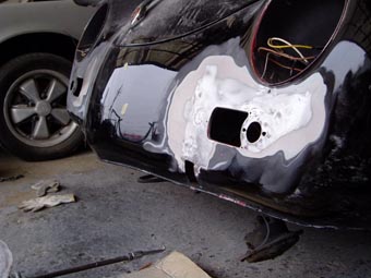 | ハードトップ装着で、メーターは新品のようにリビルトされ、GTシート、内装、etcなど非常に綺麗なパーツが組み込まれています。このままでも充分いいのですが、膨らみ、縮み、ヒビ割れ等が所々に有り、それらを修理しながらカレラGT仕様に仕上げます。 |