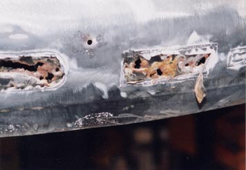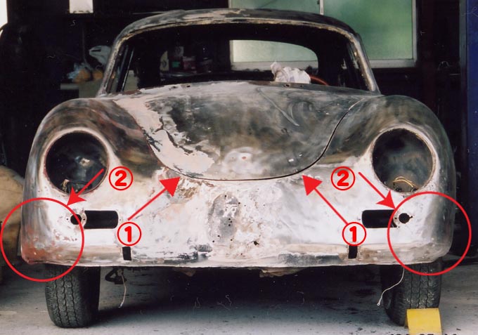 次に、どこかの年代でレストアが施されていて、その処置が適切でない状態で現在に至っているケース。適切な板金処理をしないままパテを厚塗りして整形したものや部品が正しく取り付けられていないものなど、表面上はきれいに仕上げてあるのでパッと見た目分からないケースもあります。
